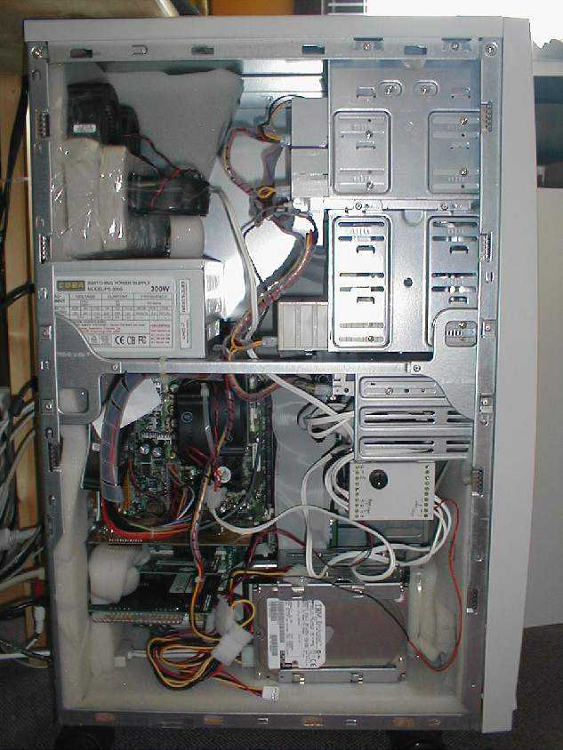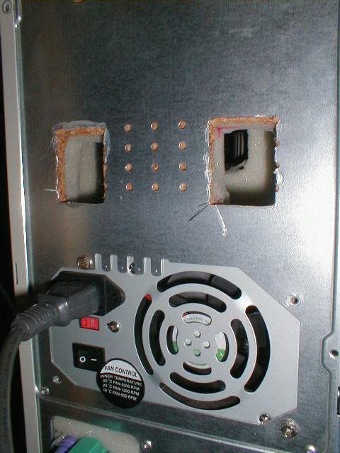Da mein Computer auch nachts laufen soll – war für mich die Eigenschaft „leise“ besonders wichtig macht. Kein Problem, leider stellte sich raus, das meine CPU ein 650er Duron auch mit 866MHz läuft. Also war ein starker CPU-Kühler notwendig. Zum Einsatz kam ein „Neolec Freezer II“ – kein schlechter Kühler nur etwas laut. (Für einen leisen PC). Also begann ich meinen Rechner mit Kork- und Schaumstoff zu verkleiden. Zusätzlich bekam mein Rechner noch einen Gehäuselüfter. So schön der Neolec war – leider hielt er nicht lange – Die Klammer brach ab (schade). Also kaufte ich mir einen Cooler-Master DP5-6H51 und eine Woche später auch noch 6 Radiallüfter (von Conrad) – und dann gings los:
